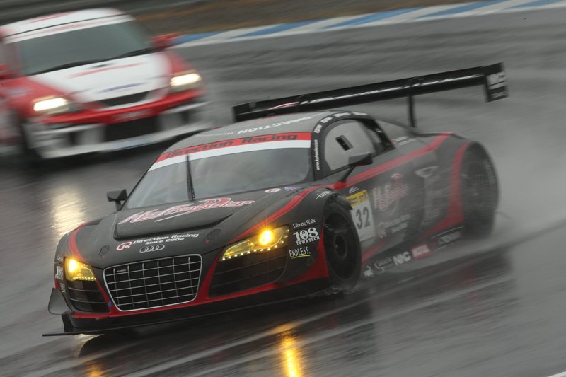 予選とは打って変って、決勝は雨の降り続く中、ポールポジションからスタートを切った、#24 スリーボンド日産自動車大学校GT-Rに終始、先行をゆるすものの、後半、#32 ケーズフロンティアDR AUDI R8が、怒涛の追い上げをみせた。