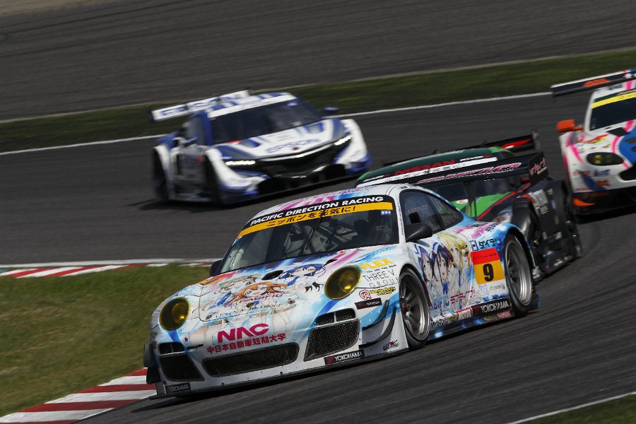 PACIFIC RACING TEAM #9の「国立音ノ木坂学院NAC ポルシェwith DR」のポルシェGT3Rは、白坂選手・坂本選手の奮闘により、9位入賞をはたしました。