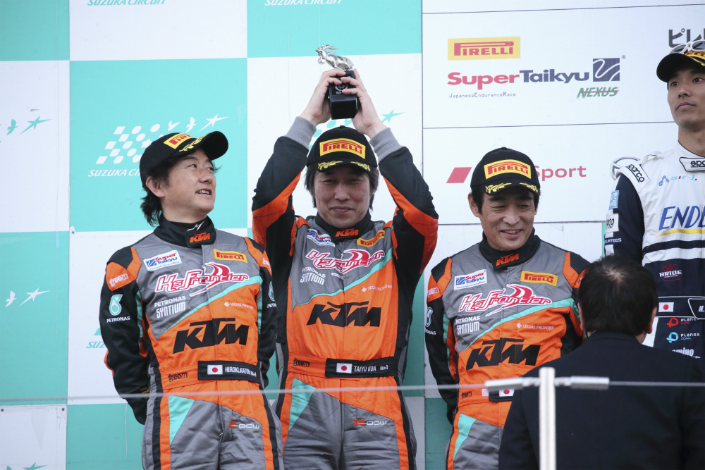 途中、キャノピーの不具合が発生し急遽再ピットインを余儀なくされたり、ST-TCRクラスの車両に挟まれての苦しい展開となりましたが、見事2位でチェッカーを受けました。